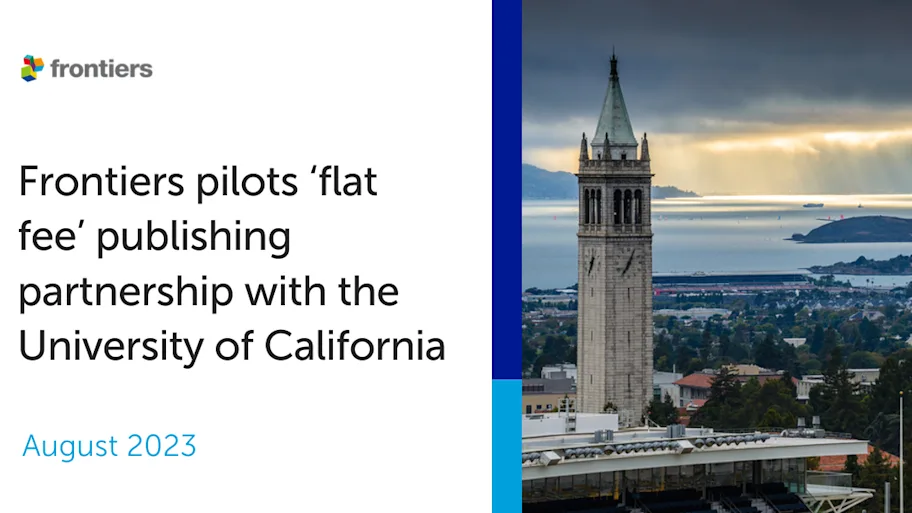 Frontiers, a leading open access publisher dedicated to scientific advancement, announced the roll-out of its flat fee open access model for institutions.